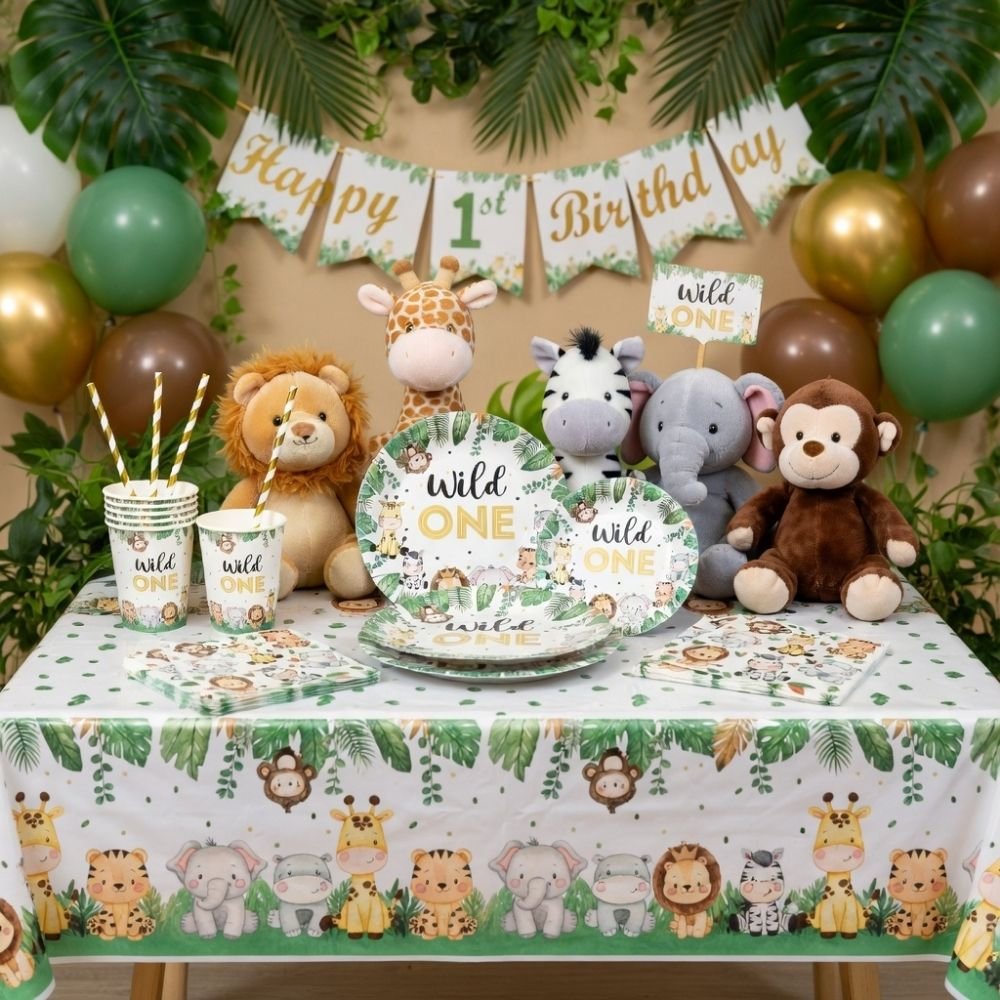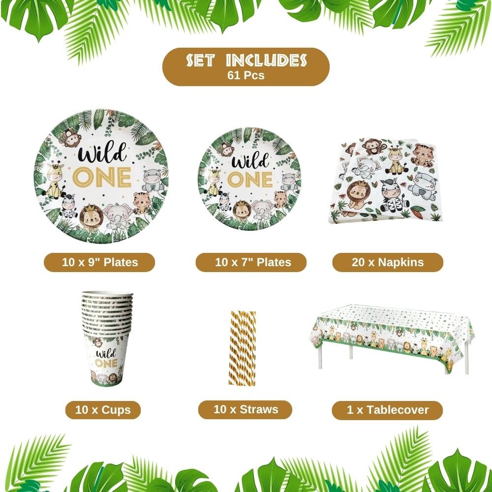 Wild ONE Birthday Tableware set for Jungle theme or safari theme birthday party. This set will definitely be the highlight of your little one’s Jungle or Safari-themed birthday party.
